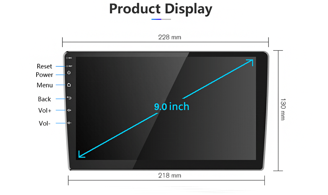 - Skjerm og oppløsning: 9inch HD IPS 1280*720