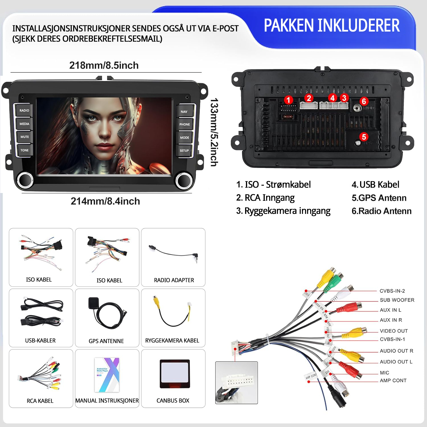 - Volkswagen T6 (Passer alle T6-modeller, men kunde må da kjøpe til vår 52-pin ISO Kontaktadapter i tillegg til spilleren, se i tilbehør)
