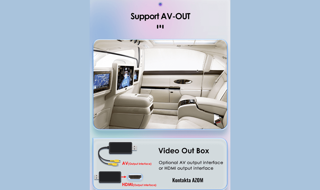 - Støtte for rattstyring, front- og ryggekamera, parkeringssensor.