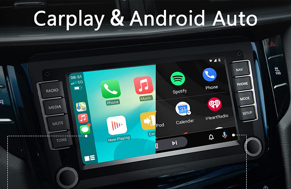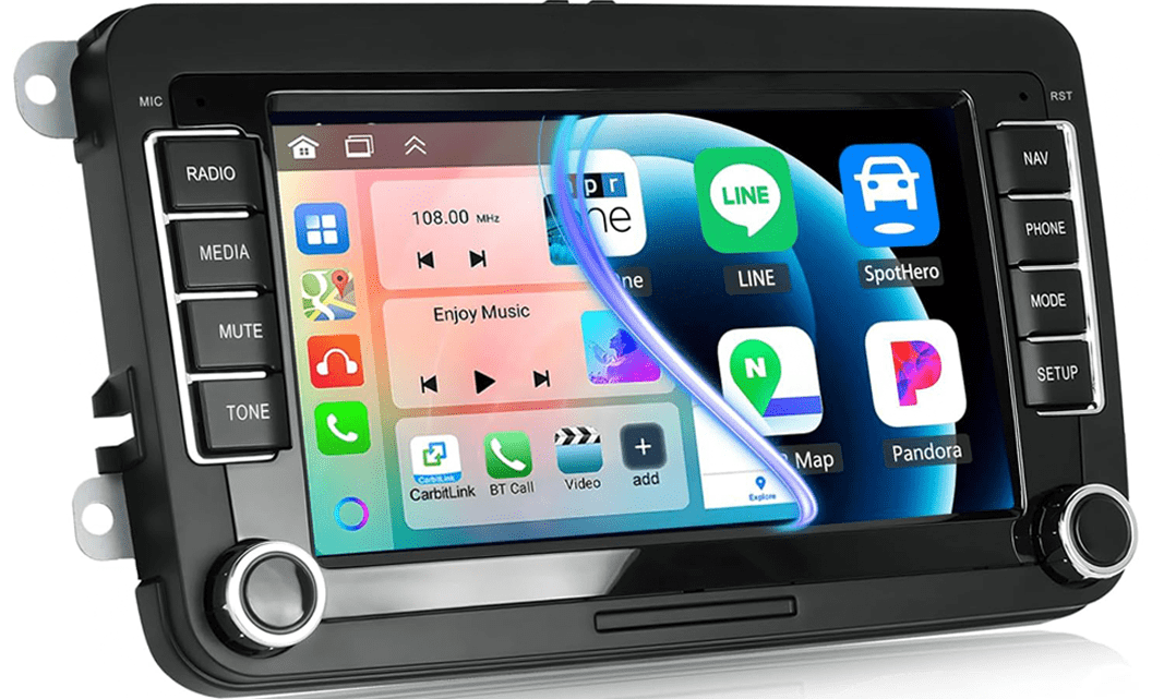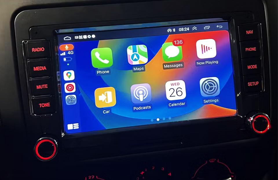 (Vår AZOM MX4 Volkswagen 9″ Spiller med Premium DSP pakke og Carplay/Android Auto pakke)