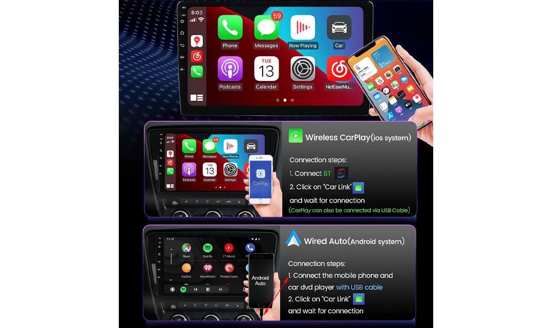 (Vår AZOM MX4 Volkswagen 9″ Spiller med Premium DSP pakke og Carplay/Android Auto pakke)