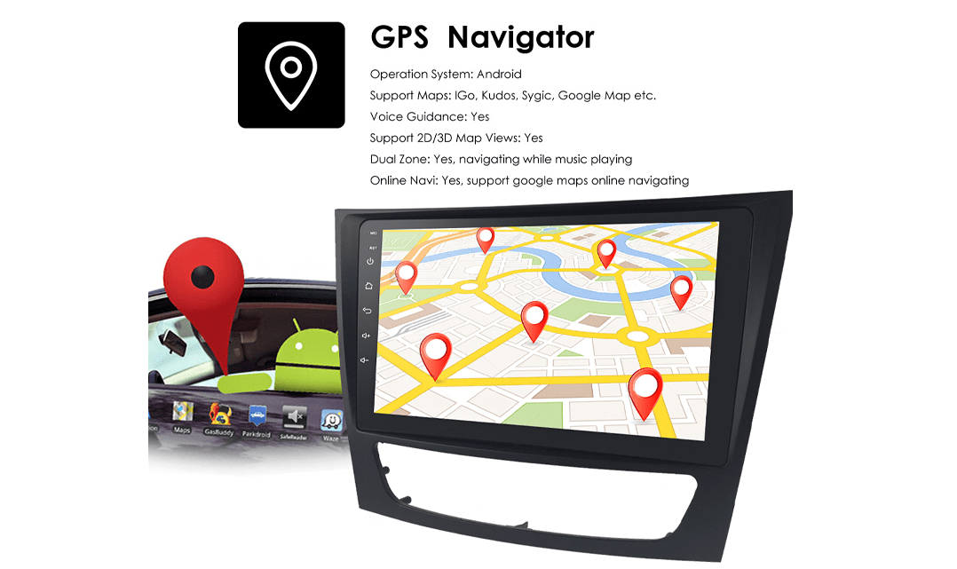 AZOM MX9 Multimedia Spiller | Mercedes-Benz E-Class W211-S211 E200-E550 E55AMG-E63AMG G-Class W463 CLK-Class W209-W219 CLS 55-CLS 350-CLS500 | 9″ IPS HD | Android | DAB+ |