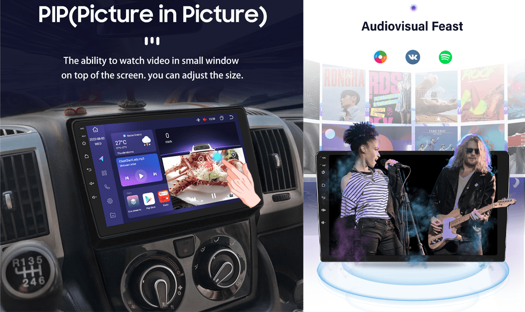 • Skjerm og oppløsning: 9 inch HD IPS 1024 * 600