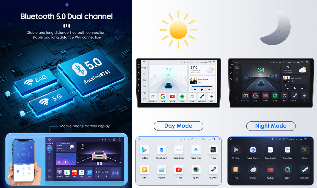 • Bluetooth-strømming: Med den innebygde Bluetooth A2DP-funksjonen kan du stramme musikk direkte fra telefonen uten ekstra ledninger