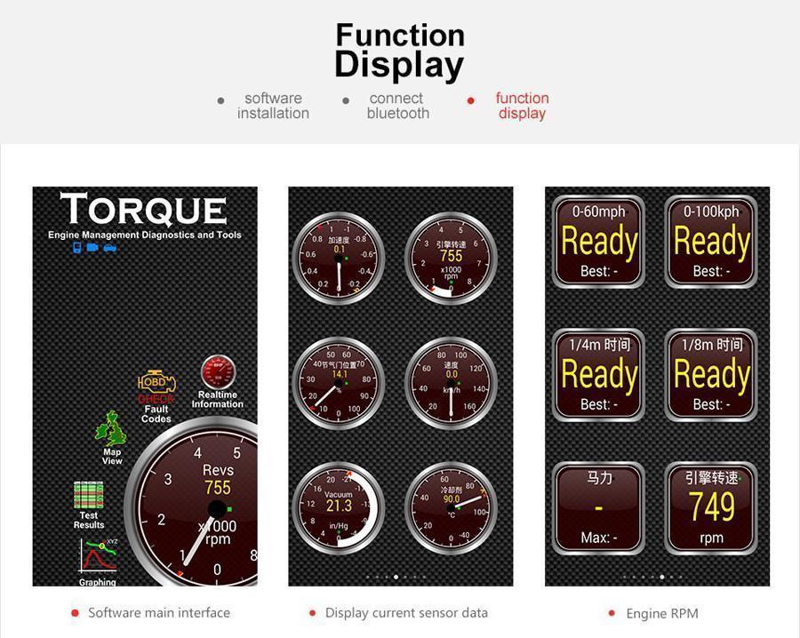 Alt fra feilkoder til gjeldende hastighet, tachometer, øketrykket, lufttrykket, drivstofftrykket, temperaturen og en rekke andre sensorer (Alle verdier som OBD2-kontakten kan lese ut)! Alle disse verdiene leveres direkte til displayet du bruker!
